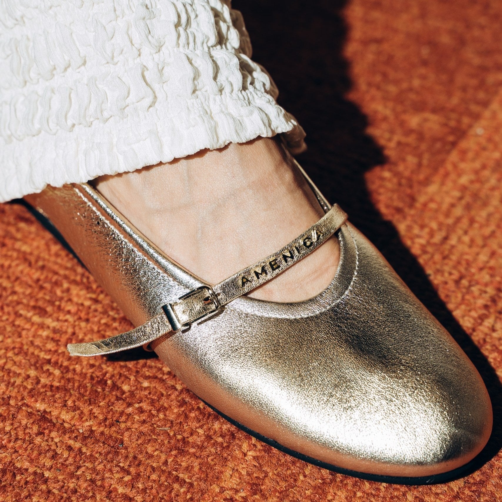Декор: виконані з шкіри кольору золотий металік, ремінець прикрашений назвою бренду