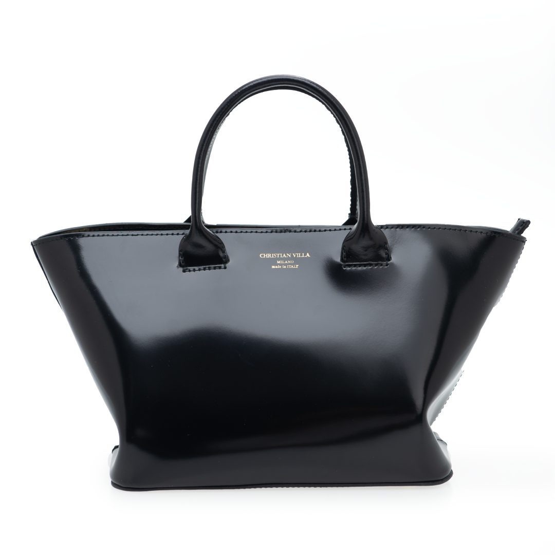 Сумка-шопер, глянцева шкіра, фурнітура та тиснення кольору золото