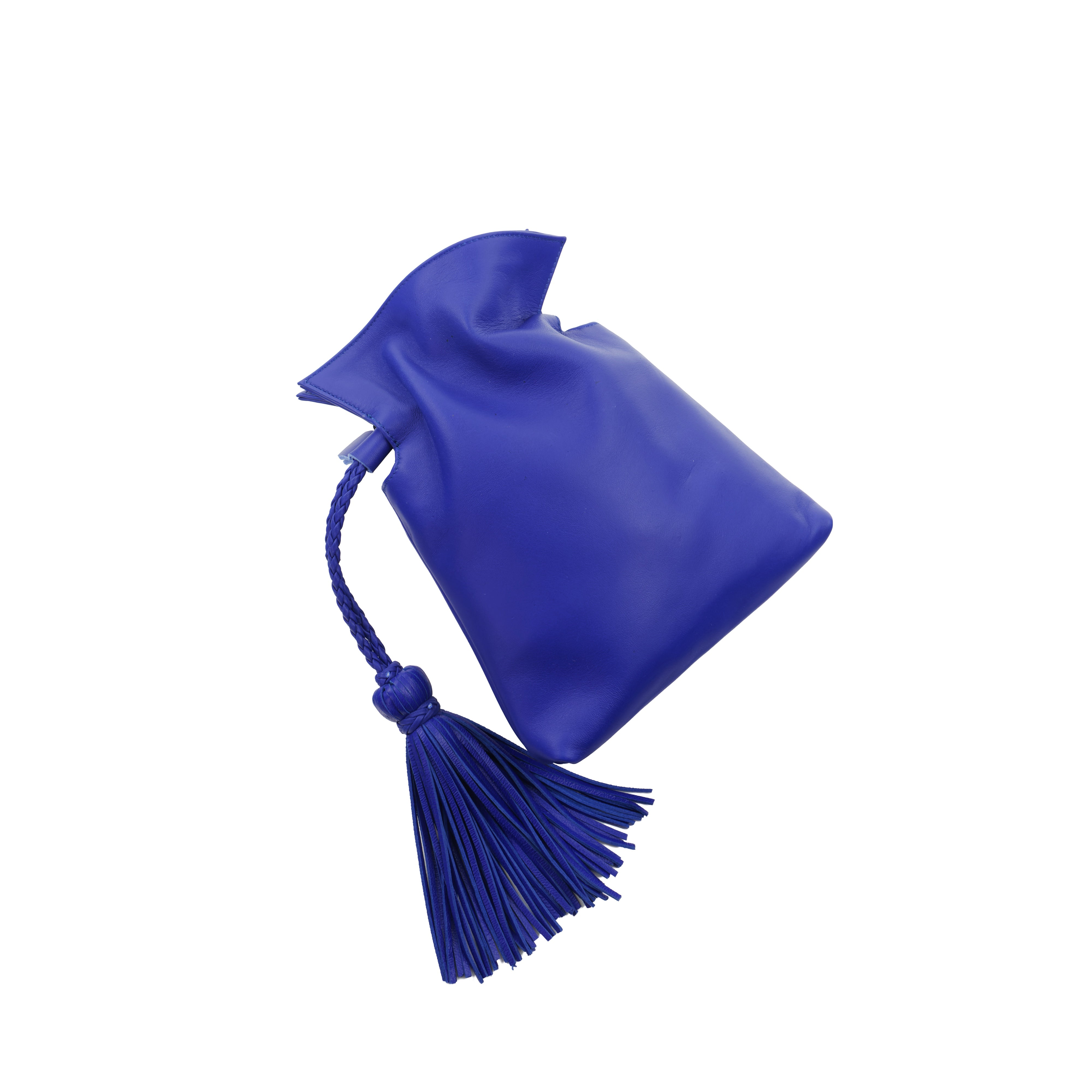 Шкіряна сумка-мішок на затяжці. Регульована та знімна шкіряна ручка через плече.