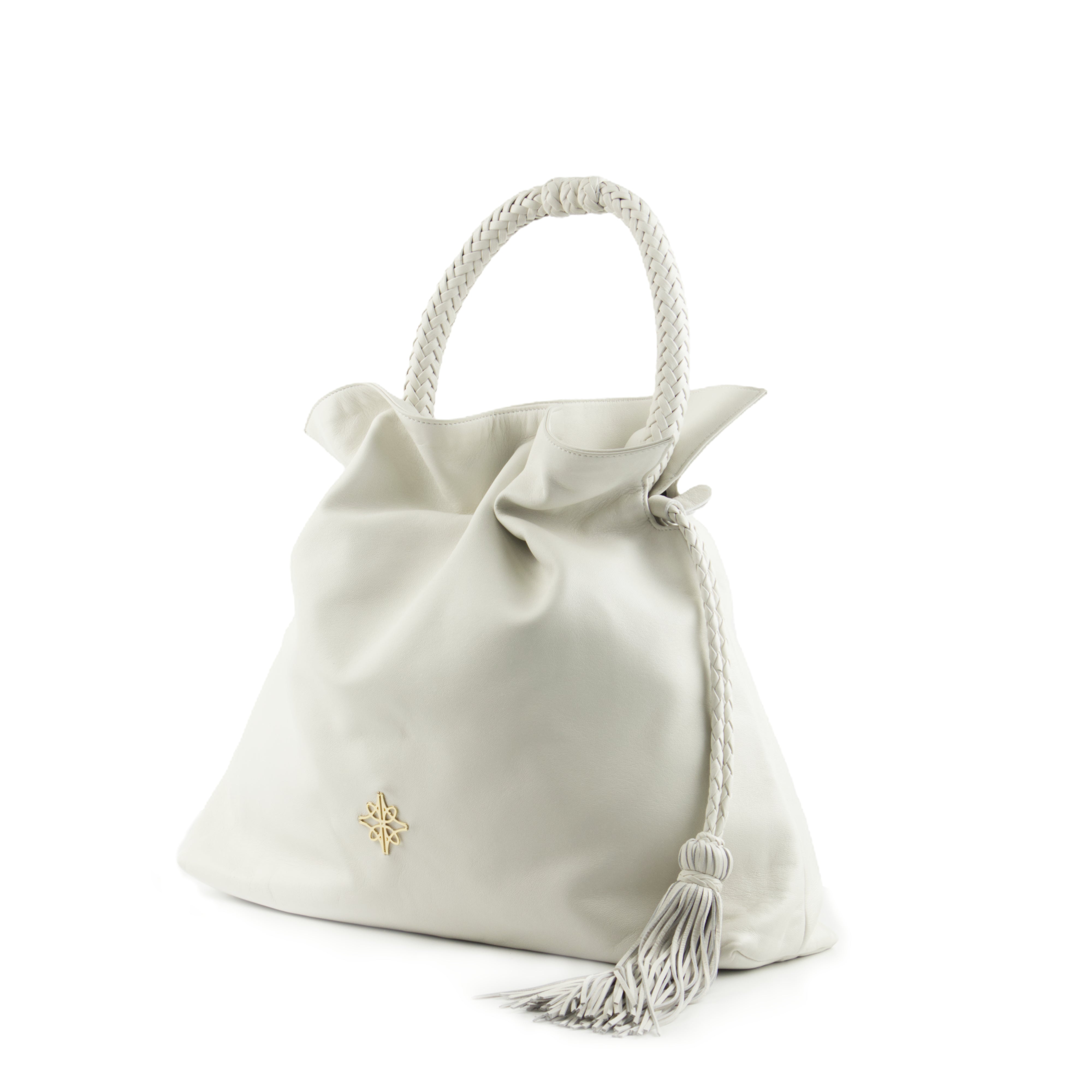Шкіряна сумка-мішок на затяжці. Дві регульовані та знімні шкіряні ручки (одна з яких через плече). Застібка-магніт.